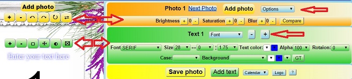 5. Select an appropriate parameter from "Photo options" or "Text options" list and use "+" or "-" button to change the photo (text).